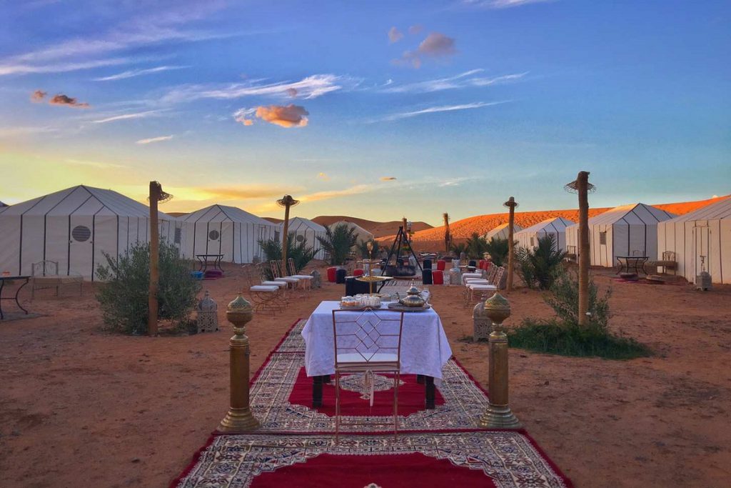 Tamegroute is known for its famous green pottery. Here we visit an old library and the underground Kasbah. We continue the drive till the end of the road at the frontier town of M’Hamid (about a 1-hour drive). From here, you can take a short camel ride through the dunes, where you’ll jump into 4WD vehicles.